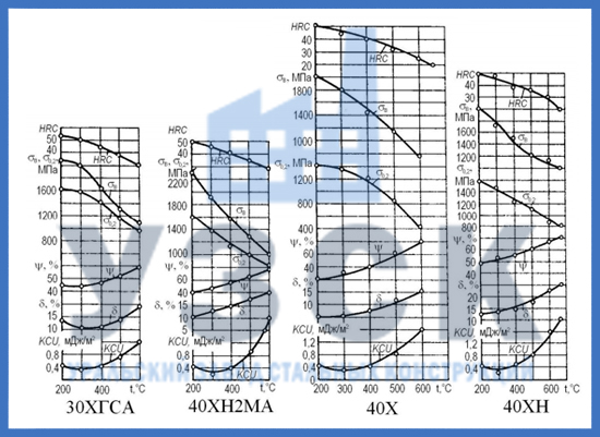 В соответствии с данными научных исследований, во избежание хрупкого разрушения хладостойкого крепежа для севера необходимо, чтобы материал изготовления при отрицательной температуре имел определенный запас пластичности и ударной вязкости, отраженный в следующих графиках: