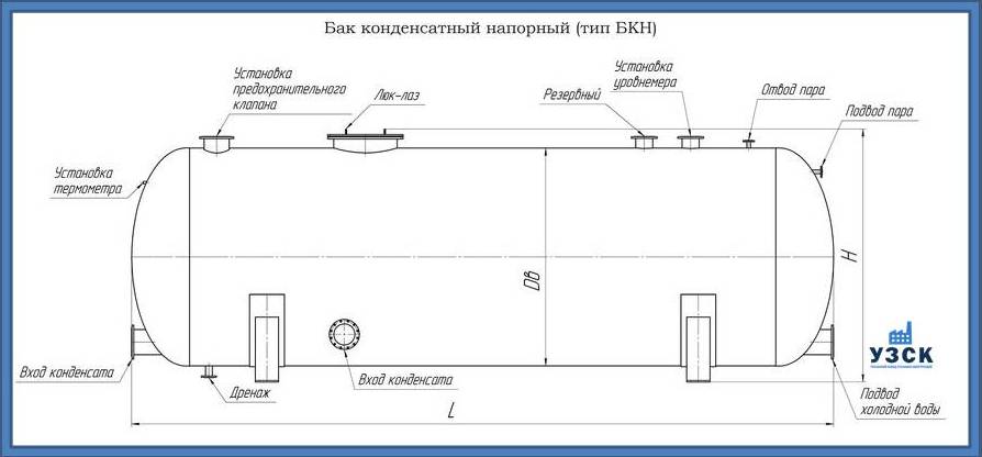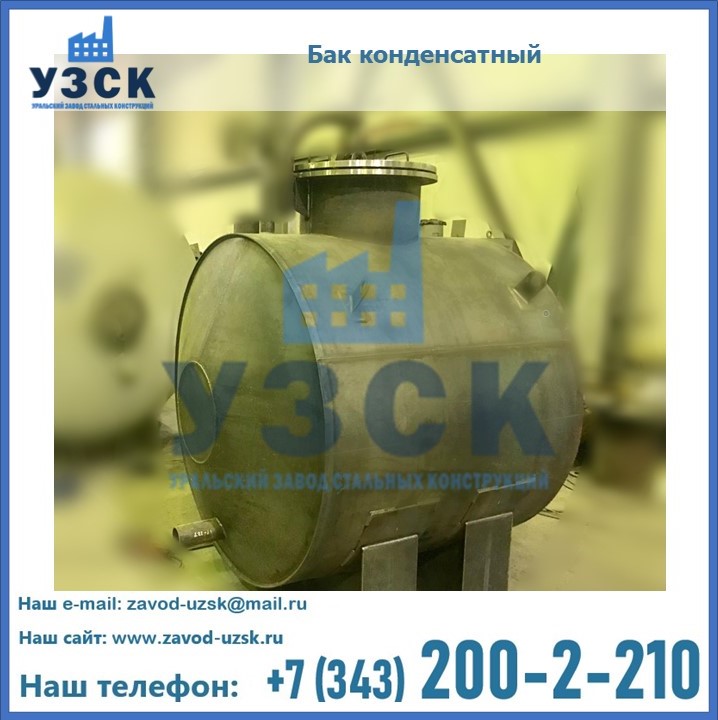 Многие заказчики стараются конденсатные баки купить по выгодной цене в компании «УЗСК» в Санкт-Петербурге. Причин несколько. Производитель поставляет емкости с полным комплектом лестниц, площадок обслуживания. Бак после гидравлических испытаний покрывают специальной внутренней и наружной краской, накладывают теплоизоляцию или наваривают крепеж для навески минматов. Условия теплоизоляции согласуются с заказчиком.